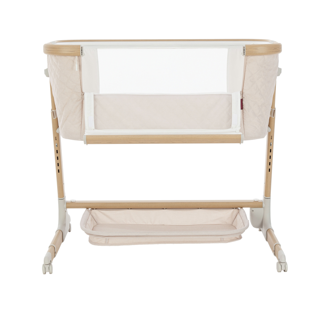 El textil combinado de la cuna asegura una libre circulación de aire y permite a los padres vigilar al bebé.