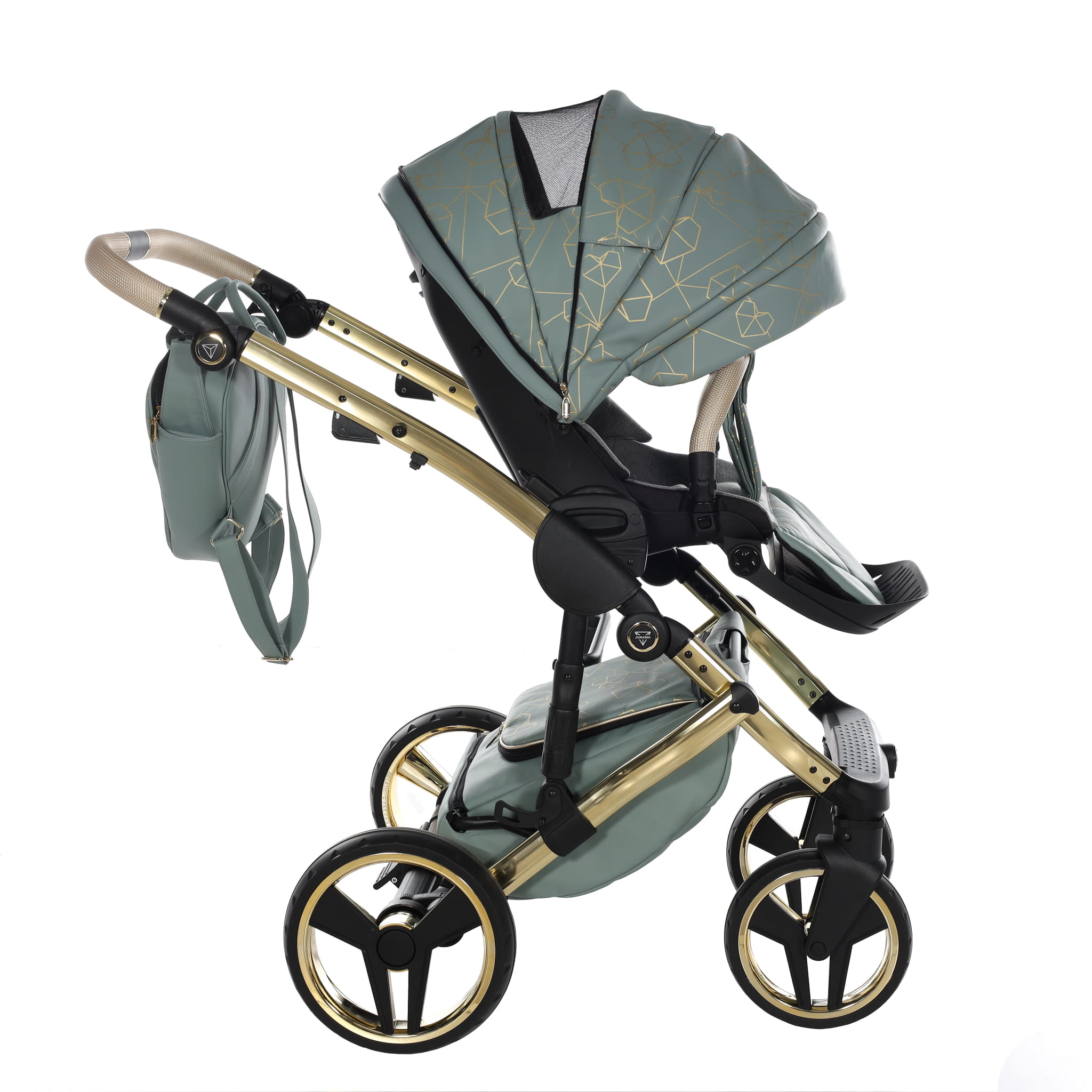 El modelo Heart de JUNAMA es una carrito de lujo, con capazo Diamond en forma de diamante y bolso en forma de corazón.