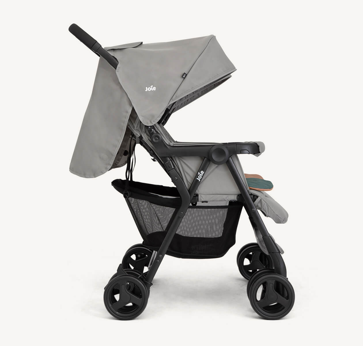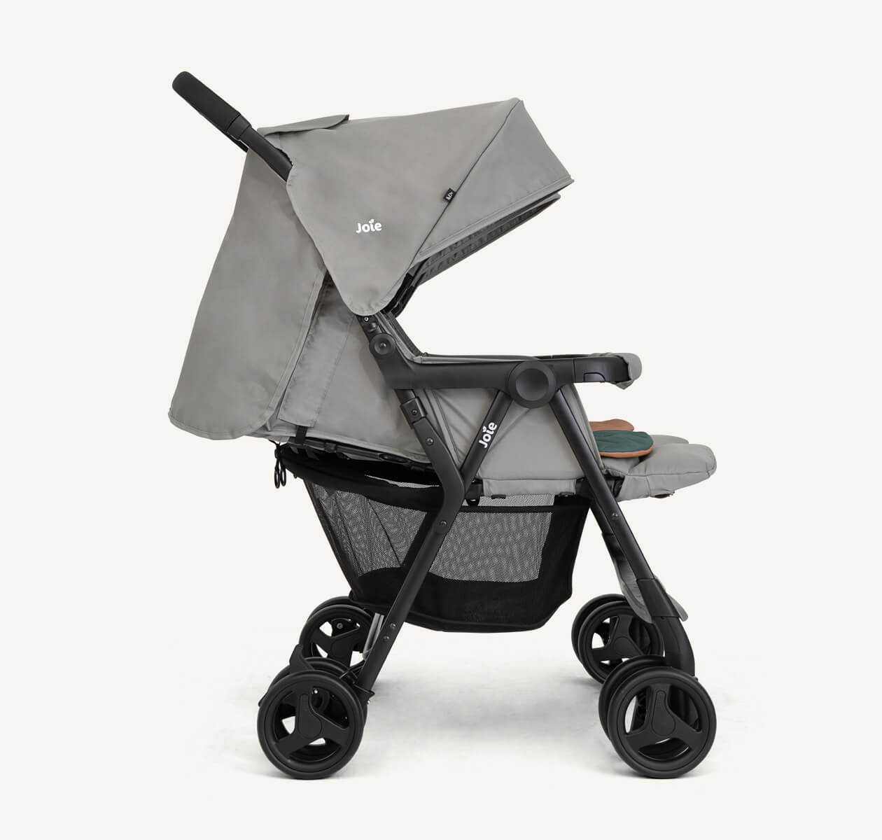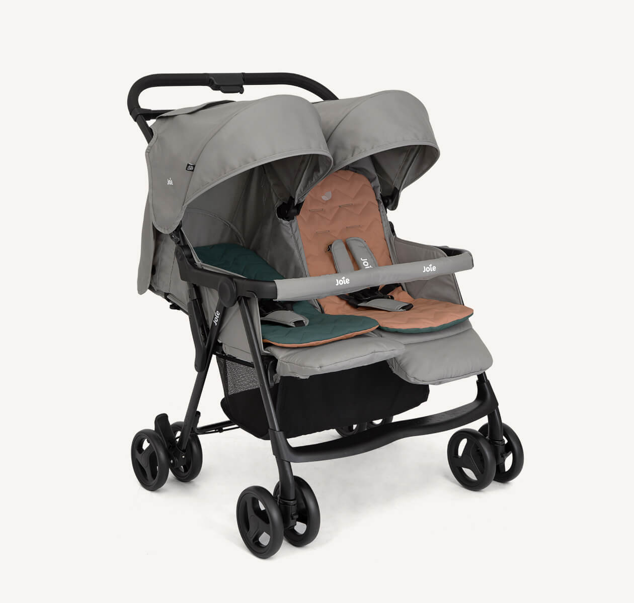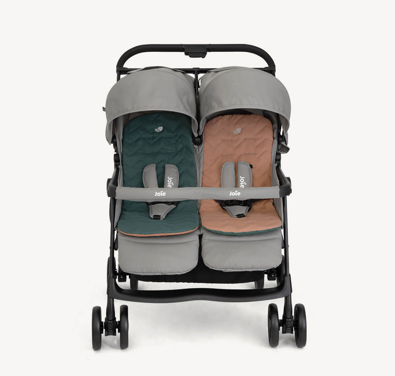La modelo aire twin de joie es una silla gemelar muy ligera gracias a su chasis de aluminio de alta calidad y gran resistencia, manejable y apta para utilizarla desde el nacimiento gracias a su reclinado total.