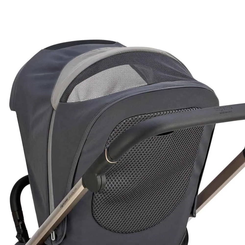 Las ruedas están diseñadas para ofrecer un paseo suave, mientras que los materiales y acabados reflejan la calidad característica de Inglesina, con tejidos confortables y resistentes.