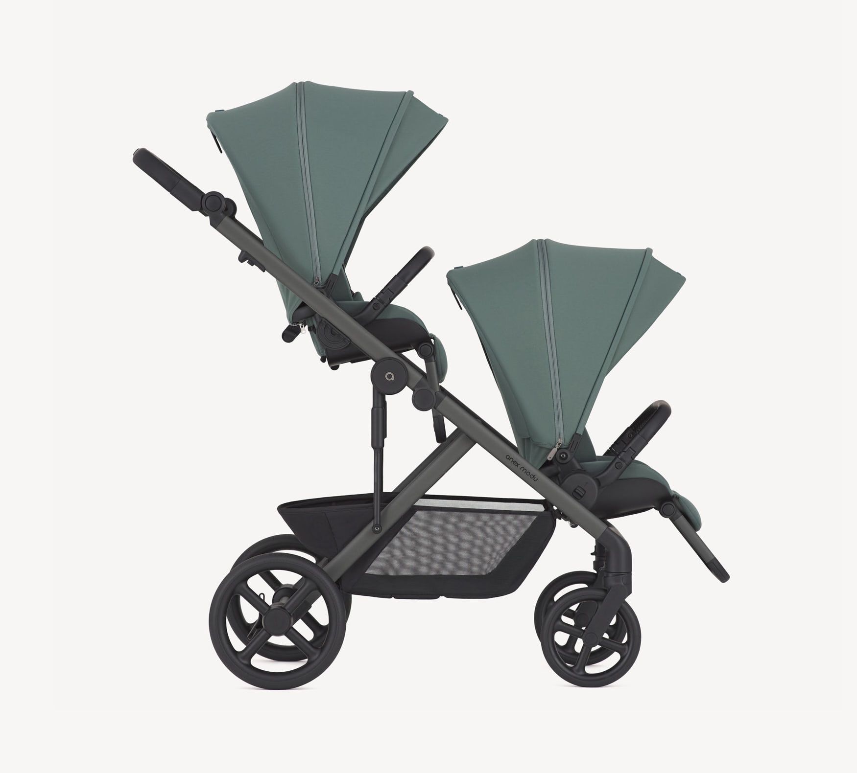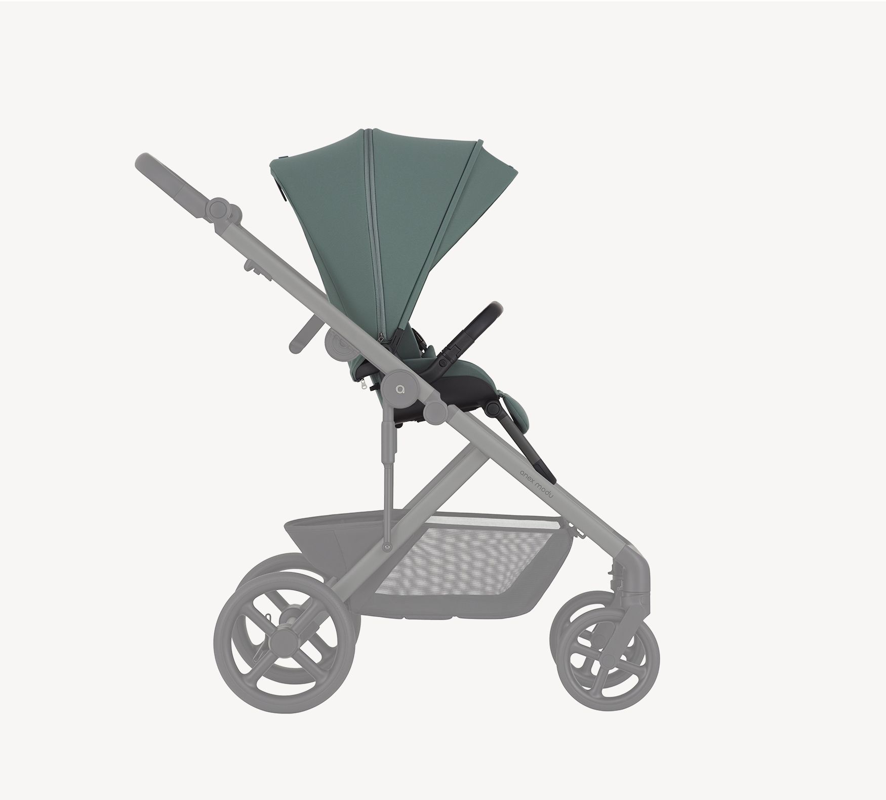 El sistema se integra perfectamente con el chasis del carrito Anex Modu, facilitando un montaje rápido y sencillo. Su estructura ligera y resistente permite un uso cómodo en el día a día.