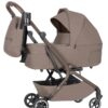 Carrello Duo Magia: capazo de tamaño completo, plegable y fabricado con materiales combinados. La amplia capota y la cubierta acolchada para las piernas crean un microclima confortable en días frescos. Tejido exterior repelente al agua con protección UV SPF 50