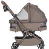 El módulo de paseo se pliega con una sola mano. Incluye una mochila elegante con sujeción al asa para padres, un compartimento principal grande, bolsillos interiores y un bolsillo exterior para objetos pequeños.