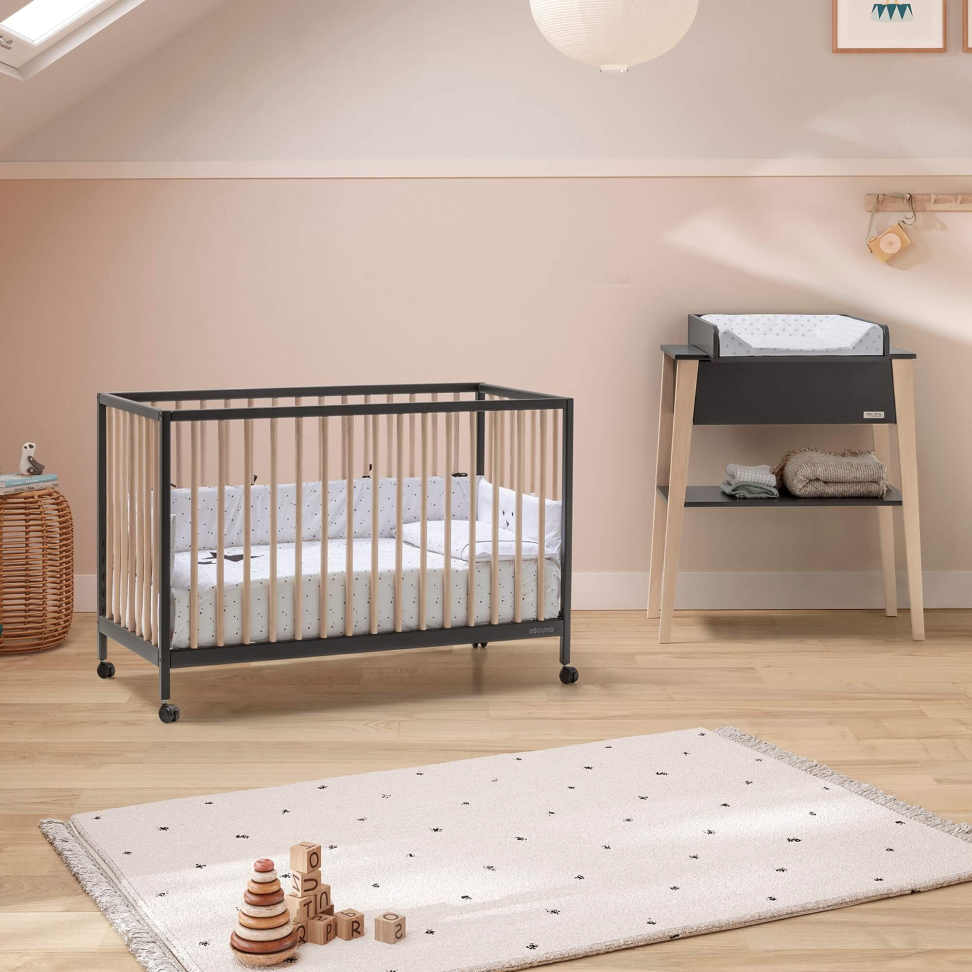 Ya ha llegado la colección Mountain de Micuna, una de las más minimalistas y en tendencia de la marca. Su moderno diseño de barrotes redondos y su amplia gama de colores disponibles hacen de ella una cuna versátil y estética, combinable con cualquier estilo de decoración.